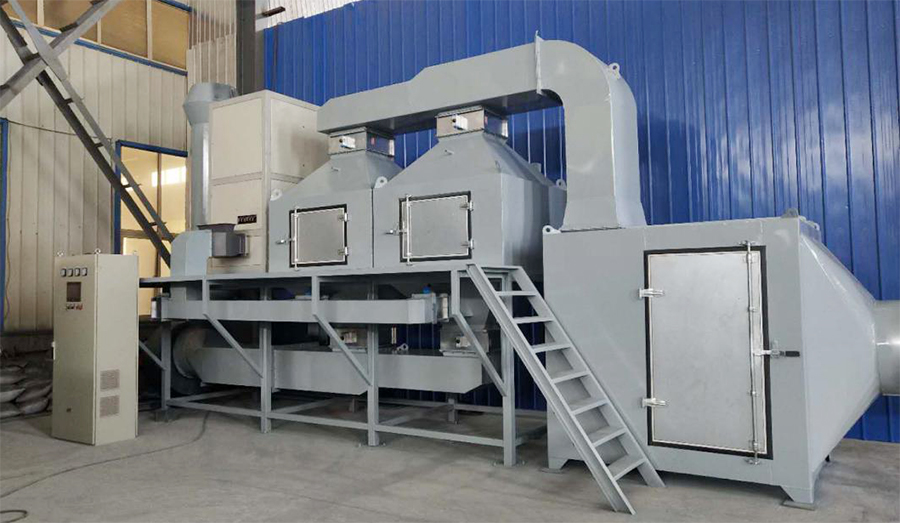 設(shè)備主要由干式過(guò)濾、活性炭吸附床、催化燃燒脫附床、配套風(fēng)機(jī)、電器控制等組成。