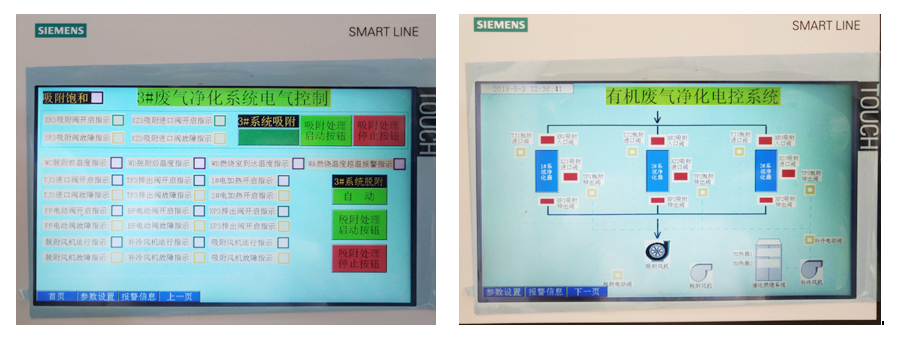 該系統(tǒng)采用CCO型凈化裝置一套,處理風(fēng)量為2000m3/h,功率60kw,電加熱工作時(shí)間約半小時(shí),當(dāng)催化床溫度達(dá)到250~300℃時(shí),催化燃燒床開(kāi)始反應(yīng),利用廢氣反應(yīng)產(chǎn)生的熱空氣循環(huán)使用,此時(shí)電加熱停止,不需要外加熱,單床脫附,脫附時(shí)間為±2小時(shí),設(shè)定時(shí)間活性炭吸附箱定時(shí)自動(dòng)切換脫附,內(nèi)部裝填的陶瓷蜂窩體貴金屬催化劑使用壽命為20000小時(shí)。整個(gè)脫附系統(tǒng)采用多點(diǎn)溫度控制,保證脫附效果的穩(wěn)定。