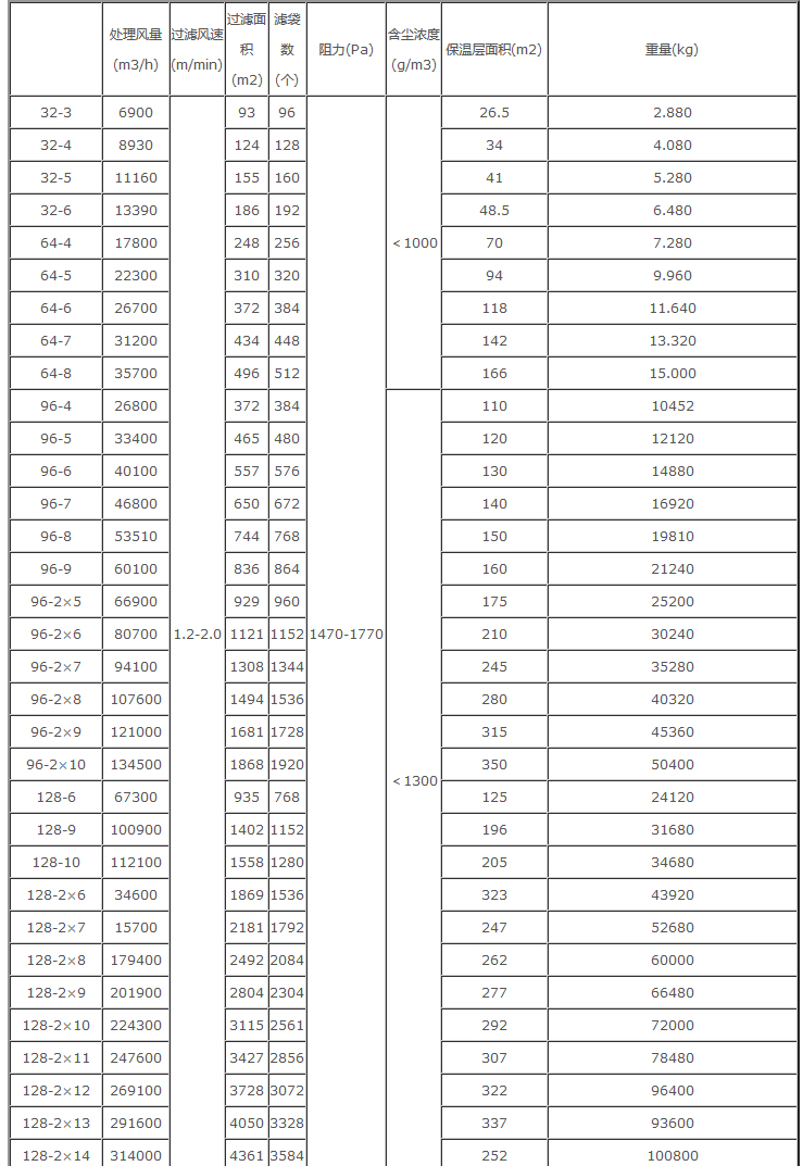 本系列產(chǎn)品共有33種規(guī)格,每室的袋有32、64、96、128袋四種,濾袋長(zhǎng)度有2450mm和3060mm兩種,收塵效率可達(dá)99.9%以上,凈化后氣體的含塵濃度小于50mg/m3(標(biāo))本系列收塵器如用于寒冷地區(qū),當(dāng)室外采暖計(jì)算溫度≤-25℃時(shí),要設(shè)熱裝置。