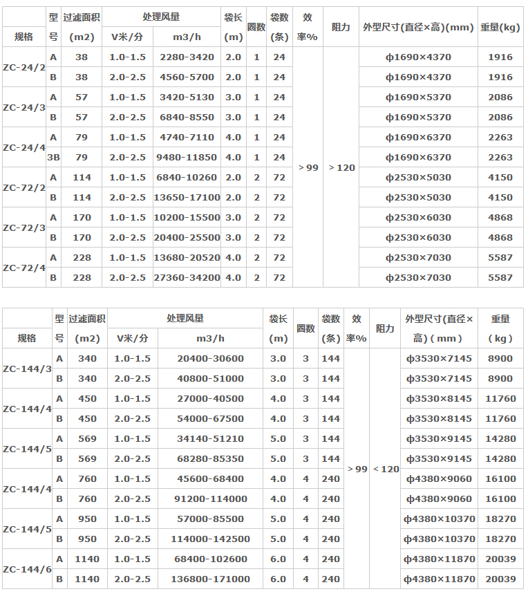 用戶選用應(yīng)注意對(duì)溫度高,濃度大、顆粒細(xì)的粉塵應(yīng)選用A型,反之用B型為宜,如濃度大于15g/m3前面應(yīng)加一級(jí)旋風(fēng)除塵器。